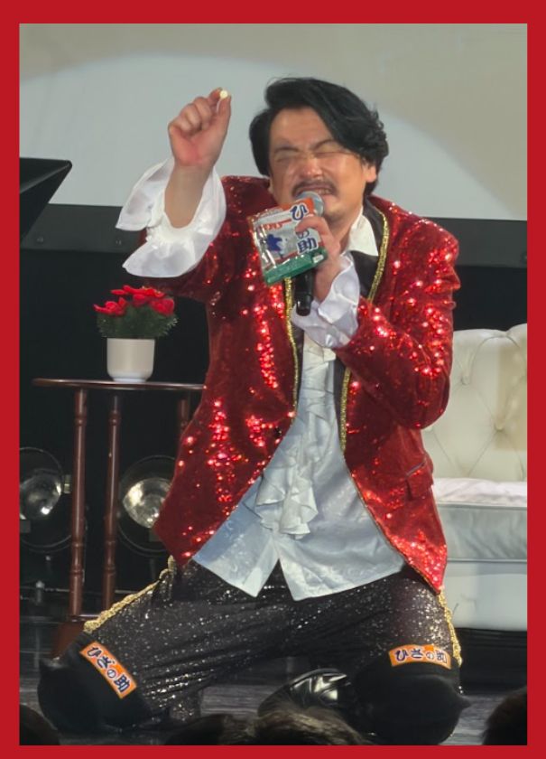 ライブ中には、ひざの痛みをユーモアたっぷりに表現しながら、